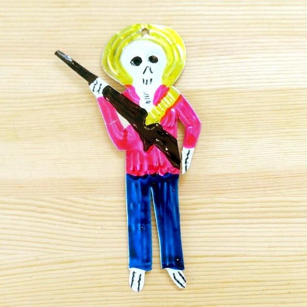 | 商品名 | メキシコ ブリキオーナメント ガイコツ(銃) |