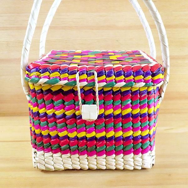 メキシコ 小物入れ カゴ パルマ スクエア フタ付M[17cm]