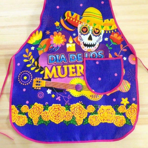 メキシコのガイコツプリントのエプロン。