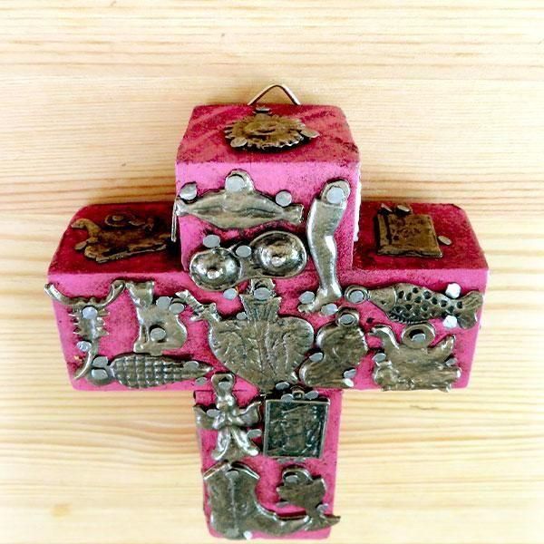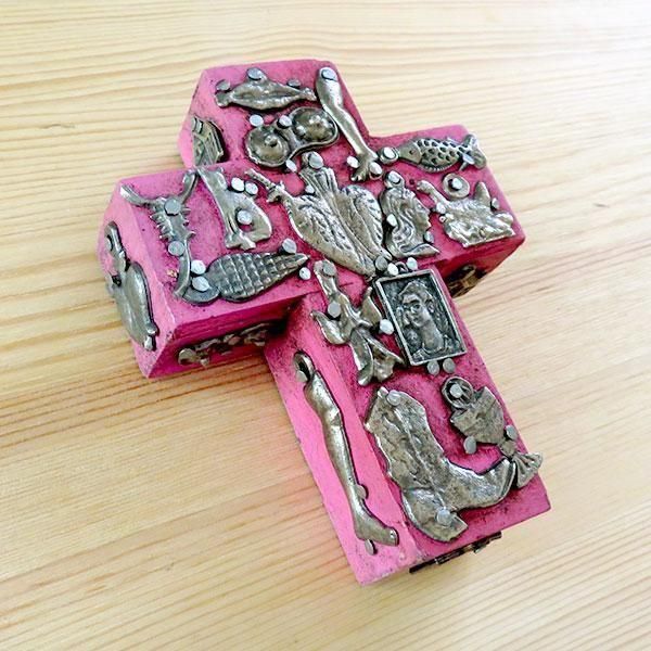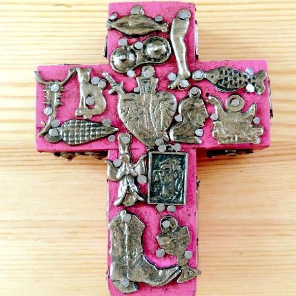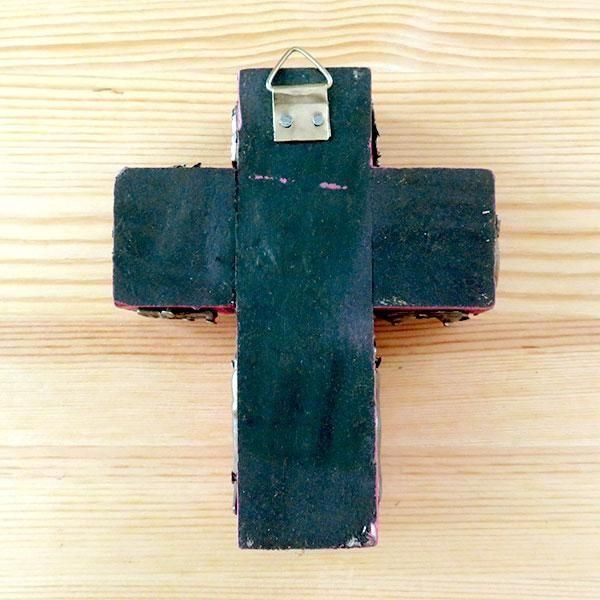 メキシコのミラグロ(ミラクル=奇跡)という名のお守りがついた、アンティーク調に作られた十字架の壁飾り。