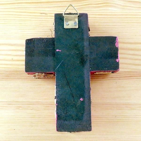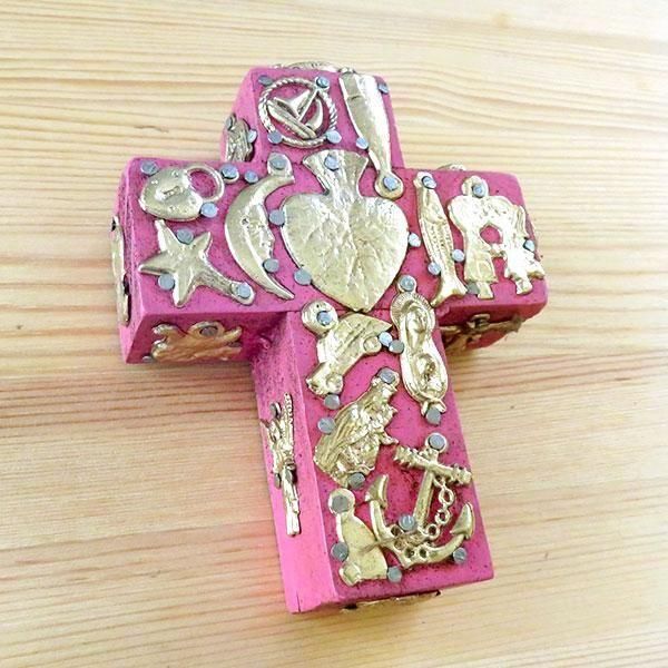 メキシコのミラグロ(ミラクル=奇跡)という名のお守りがついた、アンティーク調に作られた十字架の壁飾り。