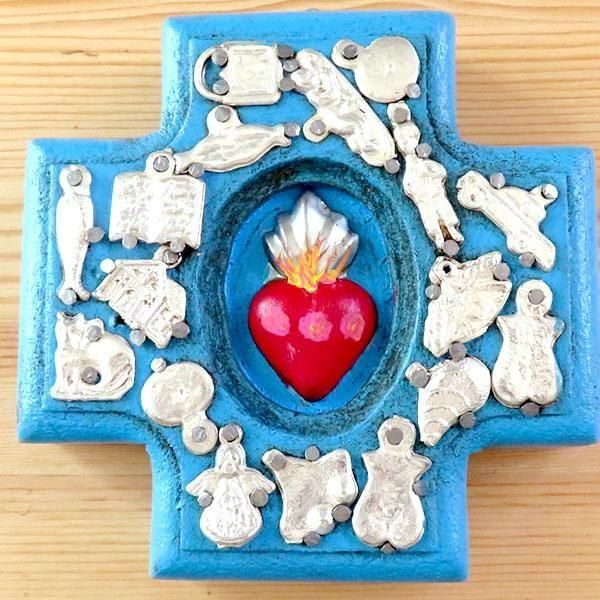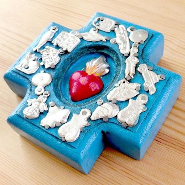 | 商品名 | メキシコ 十字架 ミラグロ ハート フレームM(ブルー)[11cm] |