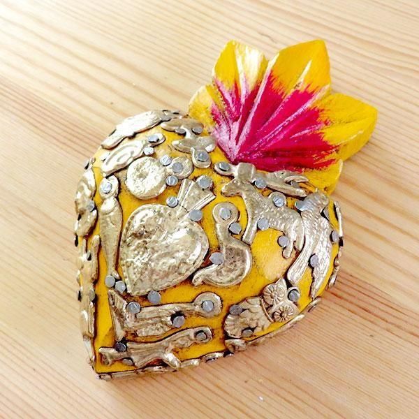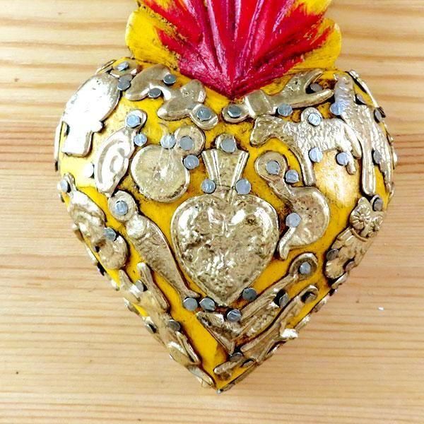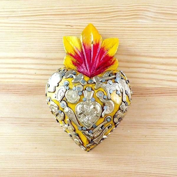 メキシコ 壁飾り ハート ミラグロ 炎S(イエロー)[11cm]