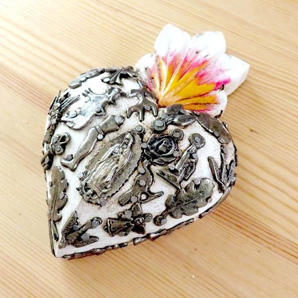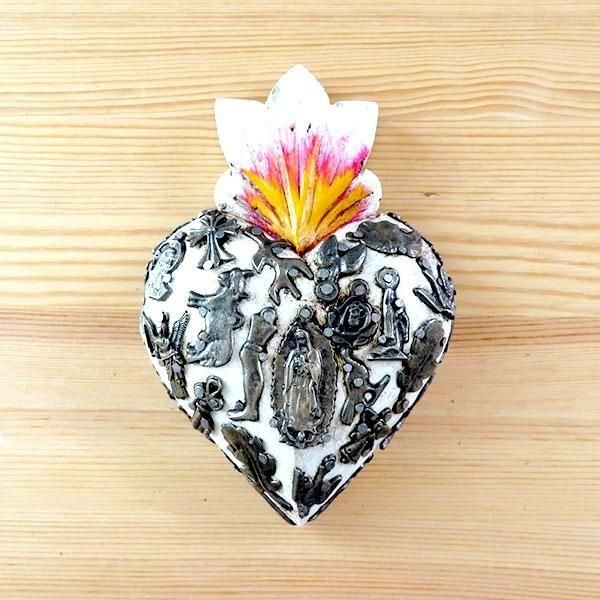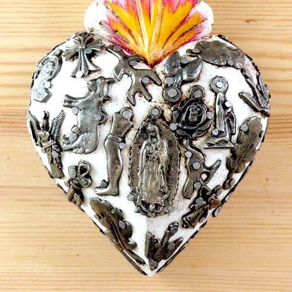 | 商品名 | メキシコ 壁飾り ハート ミラグロ マリア 炎M(ホワイト)[14cm] |