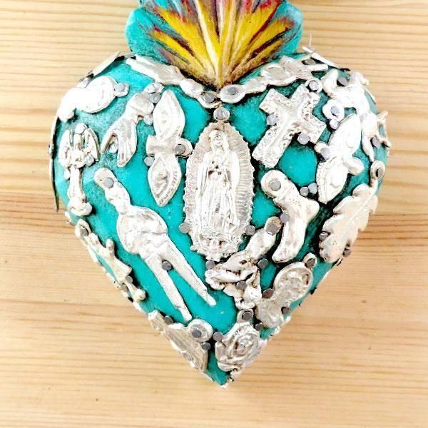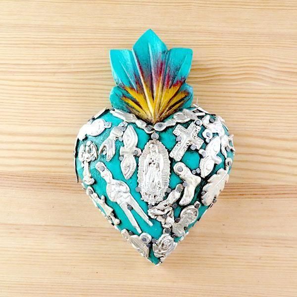 | 商品名 | メキシコ 壁飾り ハート ミラグロ マリア 炎M(ライトブルー)[14cm] |