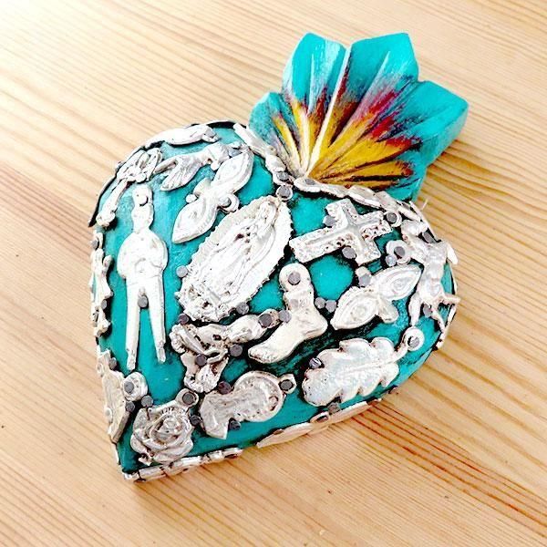 メキシコのミラグロ(ミラクル=奇跡)という名のお守りがついた、アンティーク調に作られたハートの壁飾り。