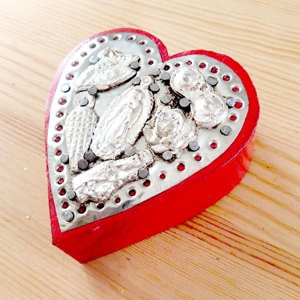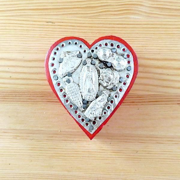 メキシコのミラグロ(ミラクル=奇跡)という名のお守りがついた、アンティーク調に作られたハートの壁飾り。