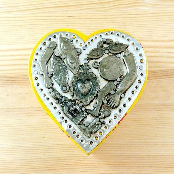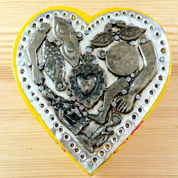 商品名 メキシコ 壁飾り ハート ミラグロ シルバーM(イエローB)[10cm]
