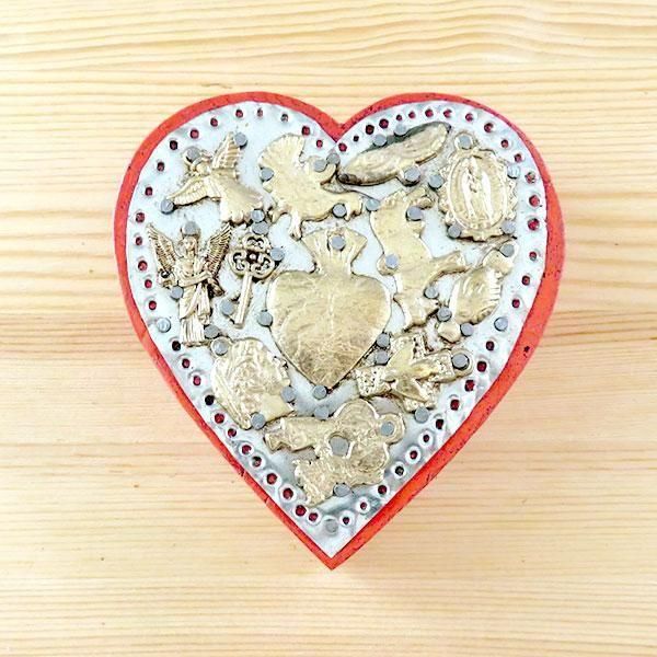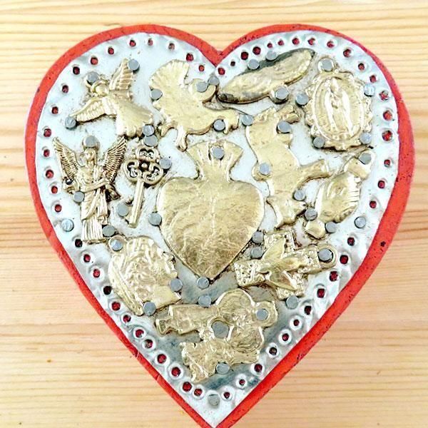 メキシコのミラグロ(ミラクル=奇跡)という名のお守りがついた、アンティーク調に作られたハートの壁飾り。