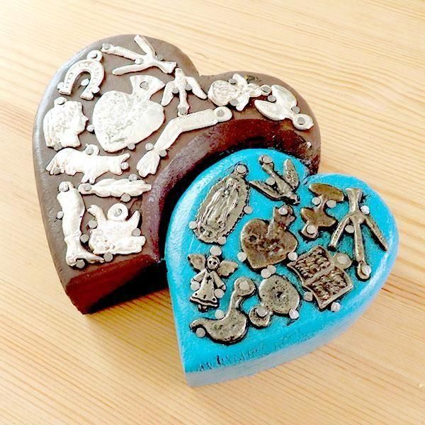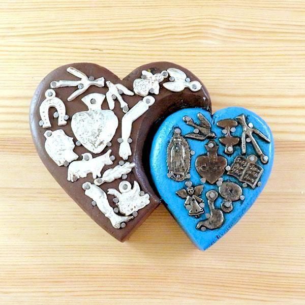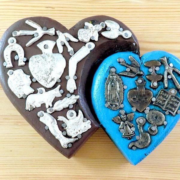 メキシコのミラグロ(ミラクル=奇跡)という名のお守りがついた、アンティーク調に作られたハートの壁飾り。