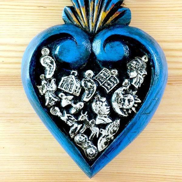 メキシコのミラグロ(ミラクル=奇跡)という名のお守りがついた、アンティーク調に作られたハートの壁飾り。