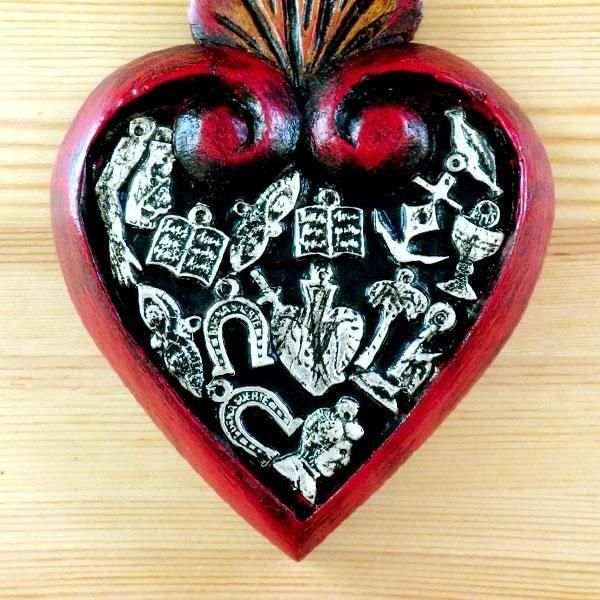 メキシコのミラグロ(ミラクル=奇跡)という名のお守りがついた、アンティーク調に作られたハートの壁飾り。