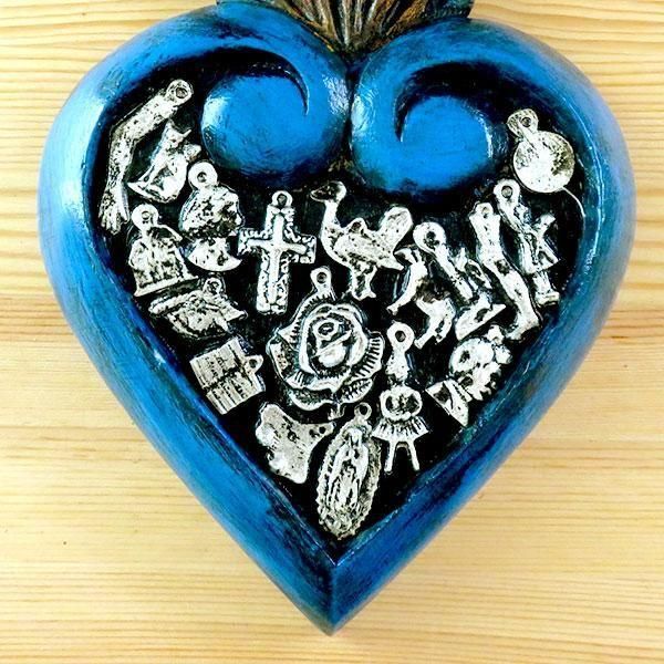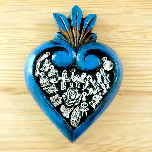 メキシコのミラグロ(ミラクル=奇跡)という名のお守りがついた、アンティーク調に作られたハートの壁飾り。