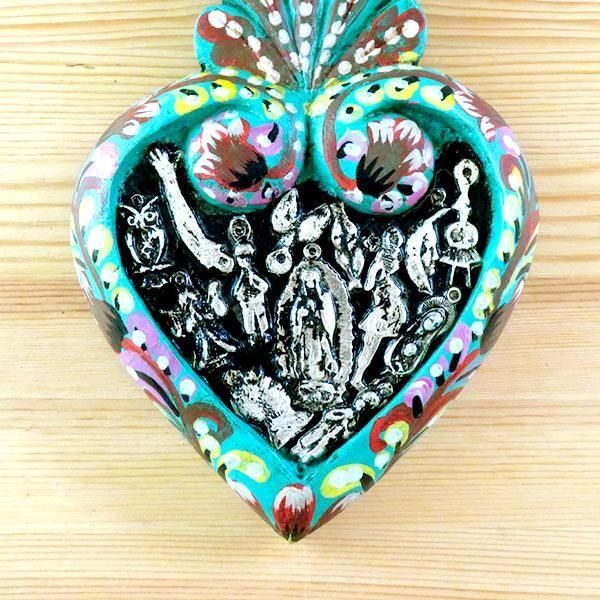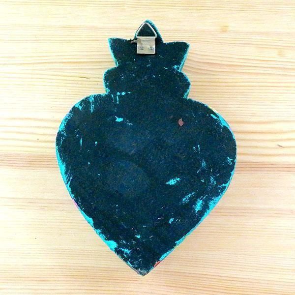 メキシコのミラグロ(ミラクル=奇跡)という名のお守りがついた、アンティーク調に作られたハートの壁飾り。