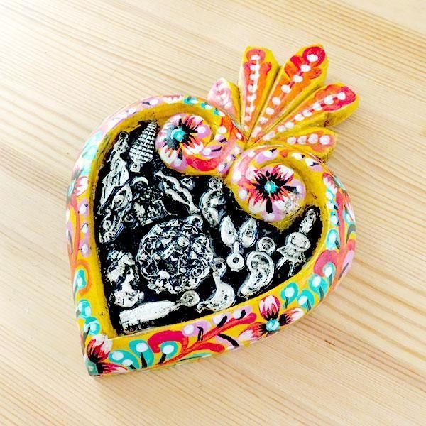 メキシコ 壁飾り ハート ミラグロ ペイント 炎M(イエロー)[16cm]