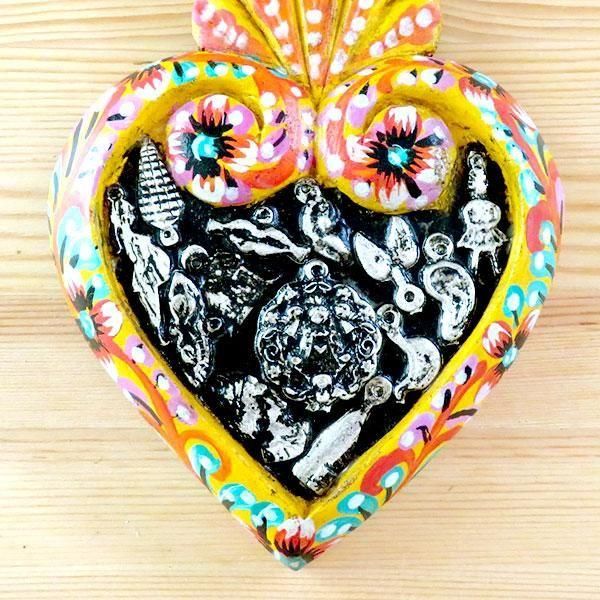 メキシコのミラグロ(ミラクル=奇跡)という名のお守りがついた、アンティーク調に作られたハートの壁飾り。