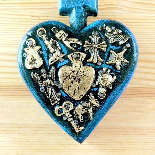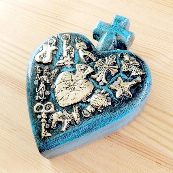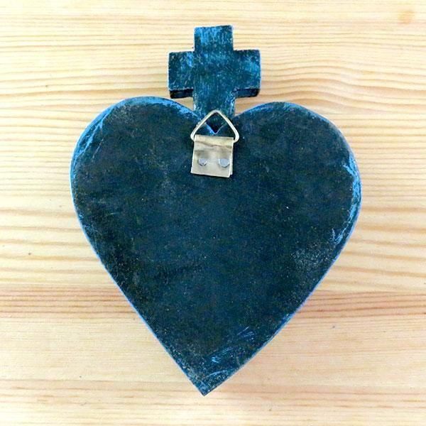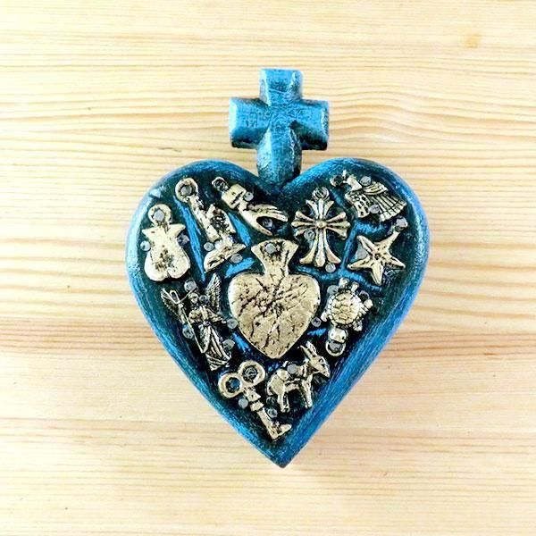 メキシコのミラグロ(ミラクル=奇跡)という名のお守りがついた、アンティーク調に作られたハートの壁飾り。