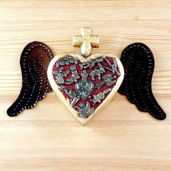 商品名 メキシコ 壁飾り ハート ミラグロ ハネ 十字架 M(B)[11cm]