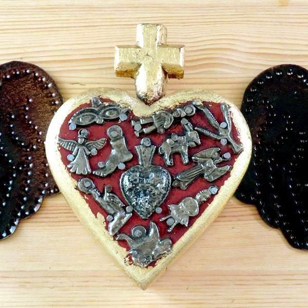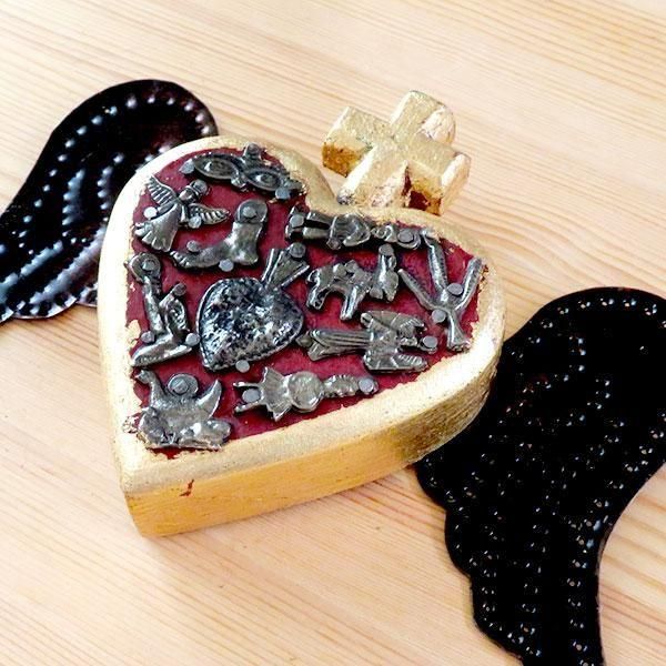 メキシコのミラグロ(ミラクル=奇跡)という名のお守りがついた、アンティーク調に作られたハートの壁飾り。