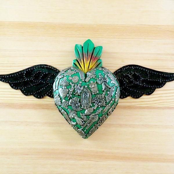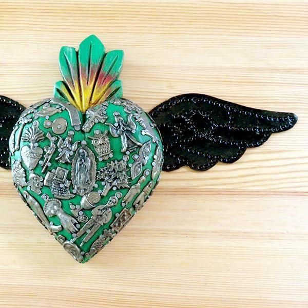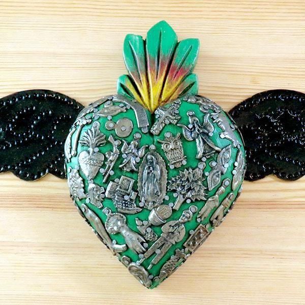 | 商品名 | メキシコ 壁飾り ハート ミラグロ 炎 ハネ マリアL(グリーン)[17cm] |