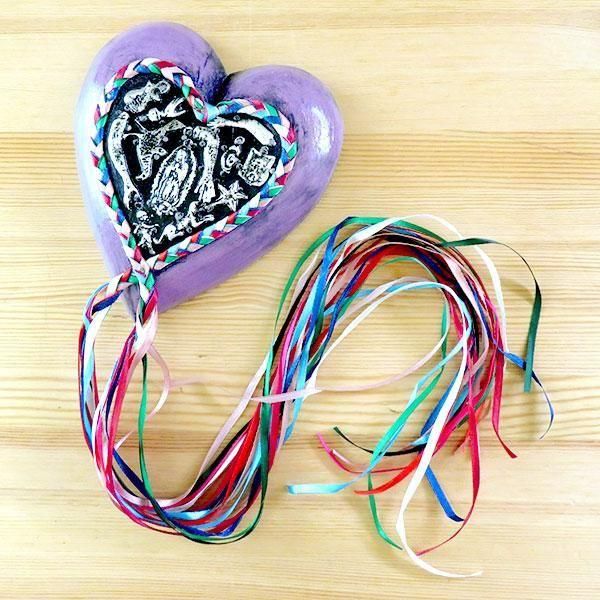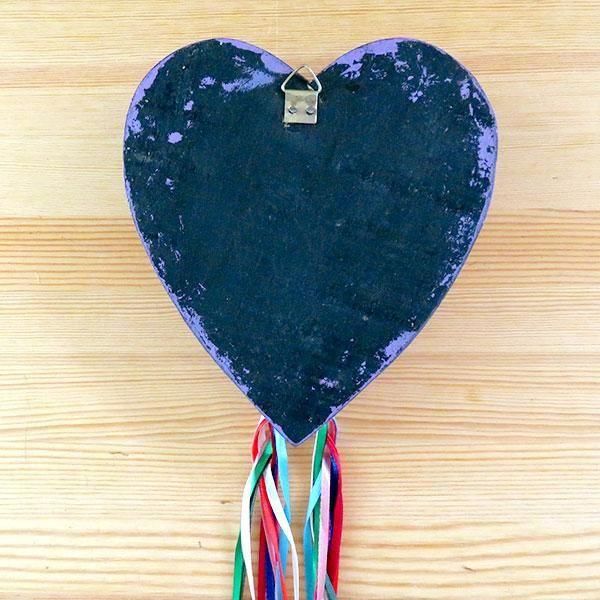 商品名 メキシコ 壁飾り ハート ミラグロ リボン マリア(パープル)[14cm]