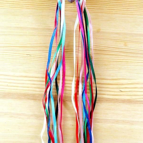 カラフルなリボンが飾られています。長ければ、お好みで切って調節してください。