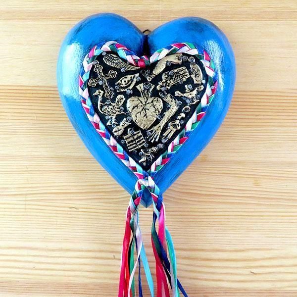 | 商品名 | メキシコ 壁飾り ハート ミラグロ リボン(ブルー)[14cm] |