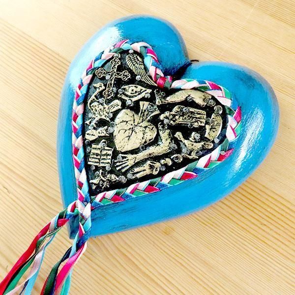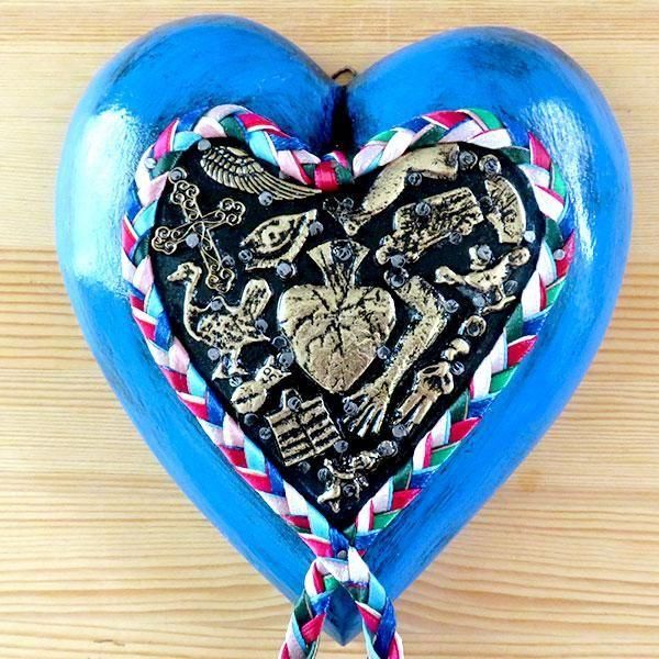 メキシコのミラグロ(ミラクル=奇跡)という名のお守りがついた、アンティーク調に作られたハートの壁飾り。