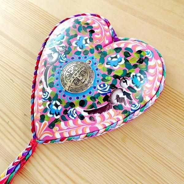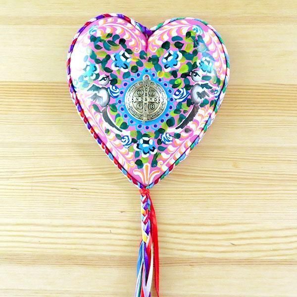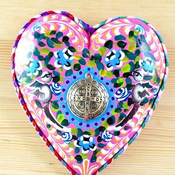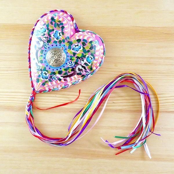 メキシコのミラグロ(ミラクル=奇跡)という名のお守りがついた、アンティーク調に作られたハートの壁飾り。