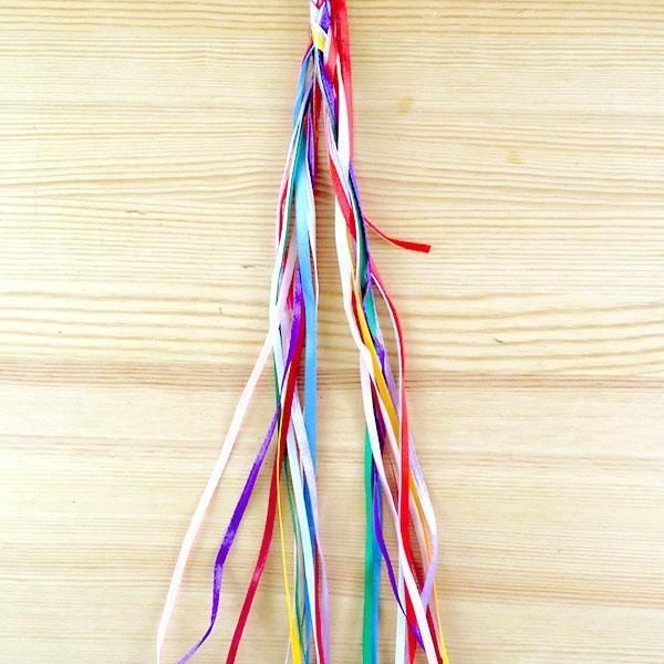 カラフルなリボンが飾られています。長ければ、お好みで切って調節してください。