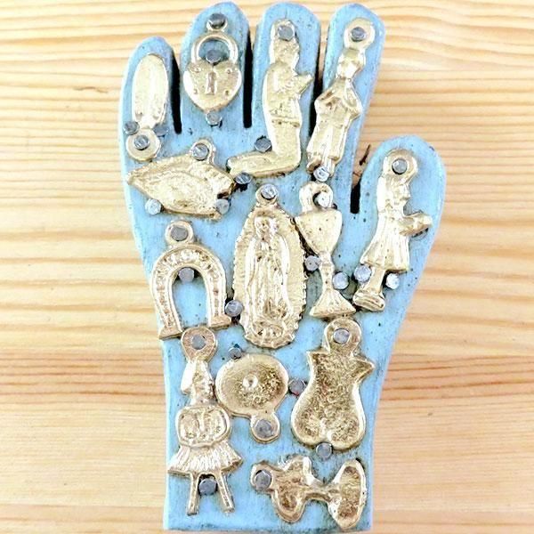 ミラグロは、小さな真鍮などでできた手、足、目、その他様々な部位などをかたどったもので、メキシコでは、それを奉納して、病気直しや願掛けに使う風習があるようです。
