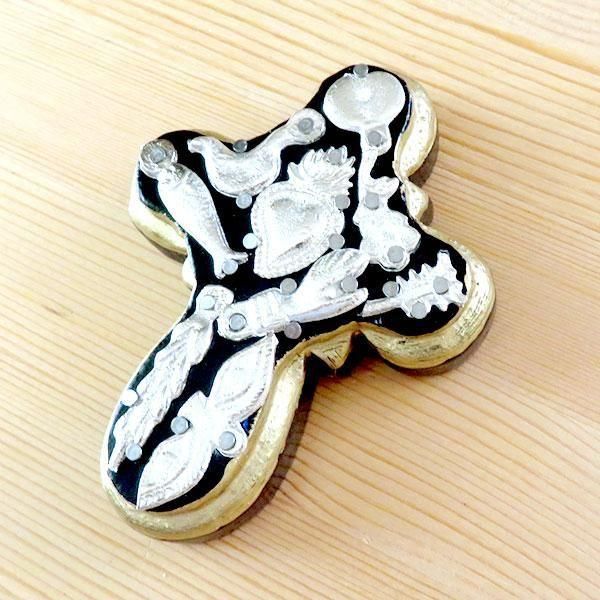 メキシコのミラグロ(ミラクル=奇跡)という名のお守りがついた、十字架の壁飾り。