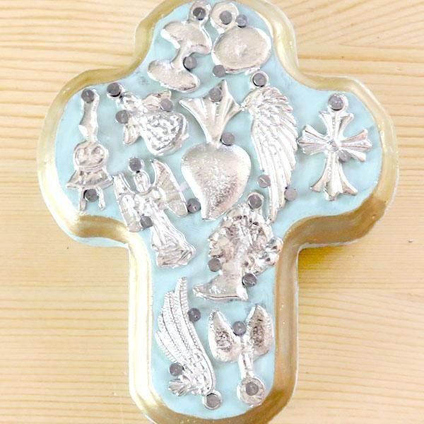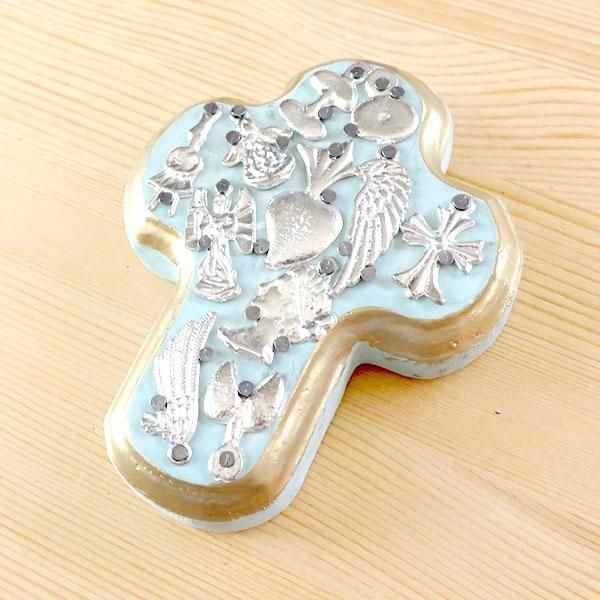 メキシコのミラグロ(ミラクル=奇跡)という名のお守りがついた、十字架の壁飾り。