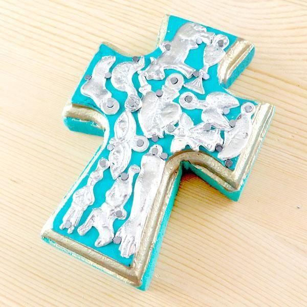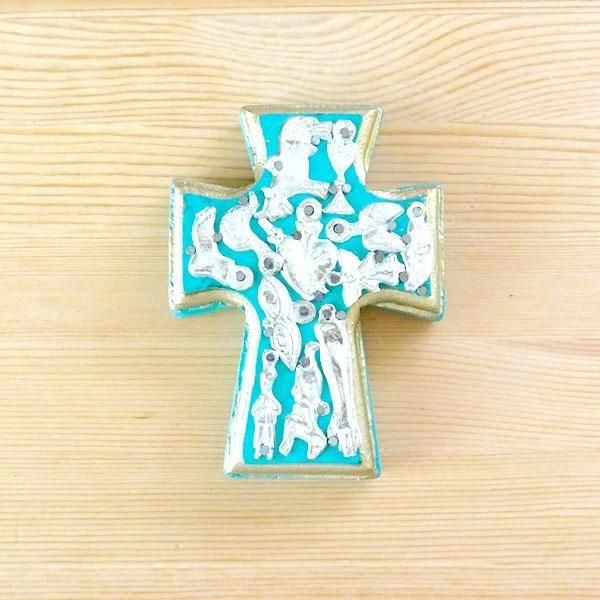 メキシコのミラグロ(ミラクル=奇跡)という名のお守りがついた、十字架の壁飾り。