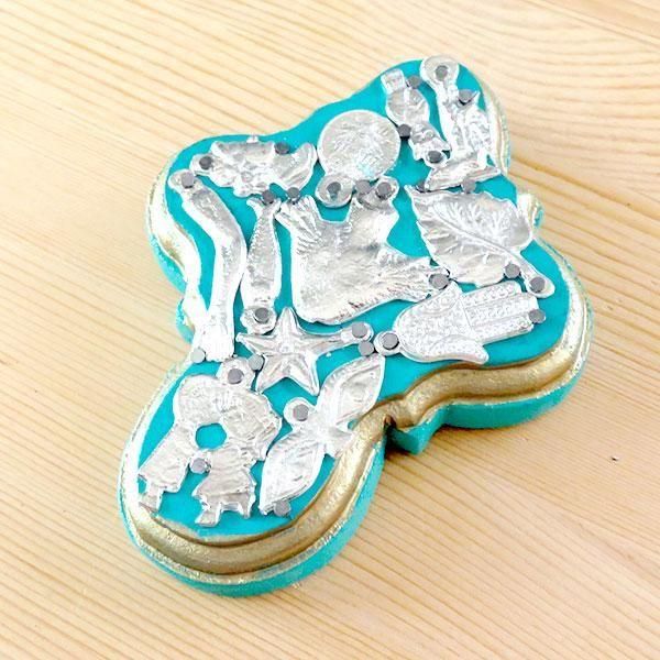 メキシコのミラグロ(ミラクル=奇跡)という名のお守りがついた、十字架の壁飾り。