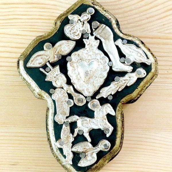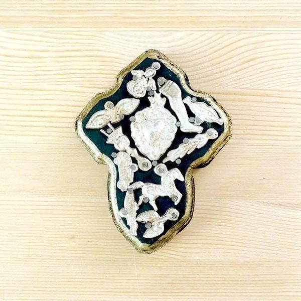 メキシコのミラグロ(ミラクル=奇跡)という名のお守りがついた、十字架の壁飾り。