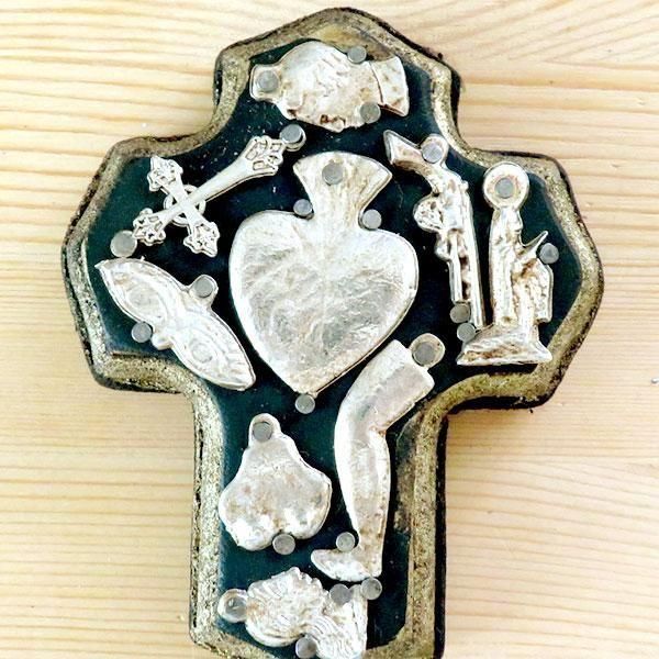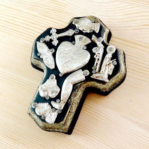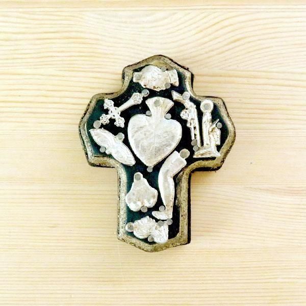 メキシコのミラグロ(ミラクル=奇跡)という名のお守りがついた、十字架の壁飾り。