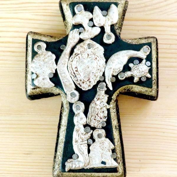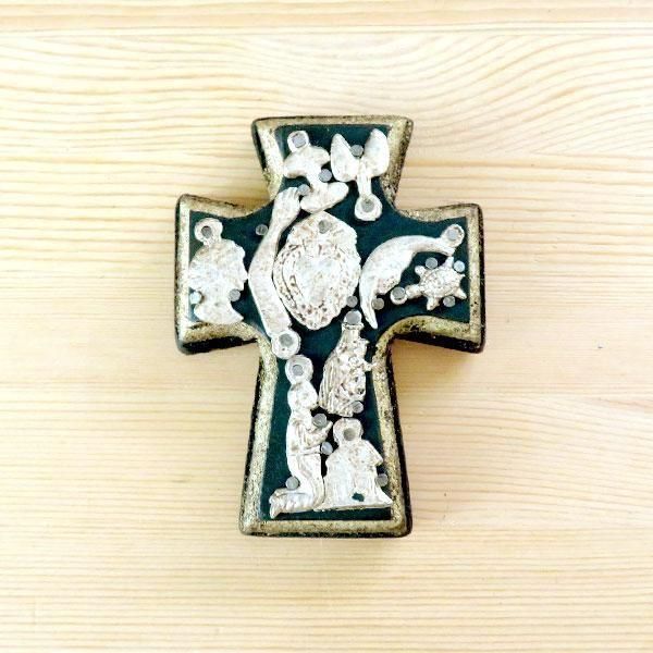 メキシコのミラグロ(ミラクル=奇跡)という名のお守りがついた、十字架の壁飾り。