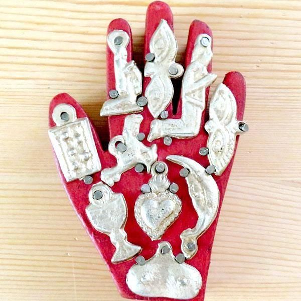 ミラグロは、小さな真鍮などでできた手、足、目、その他様々な部位などをかたどったもので、メキシコでは、それを奉納して、病気直しや願掛けに使う風習があるようです。