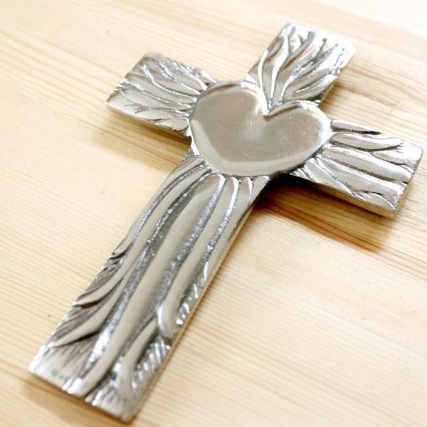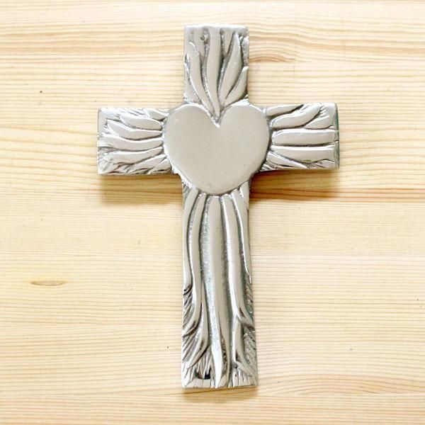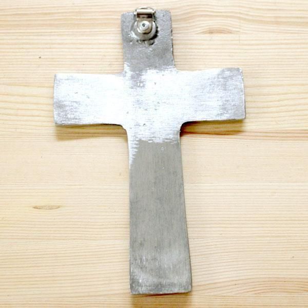 メキシコで作られた、ピューター(スズ合金)の十字架の壁飾り。