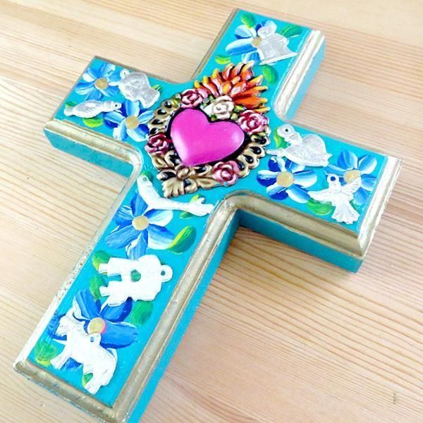 メキシコで作られた、ミラグロ(ミラクル=奇跡)という名のお守りがついた十字架の壁飾り。