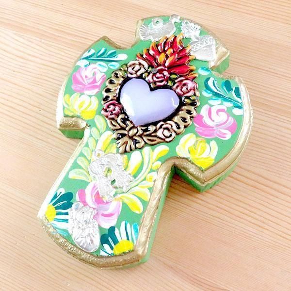 商品名 メキシコ 十字架 ミラグロ ペイント ハートM(グリーンC)[14cm]