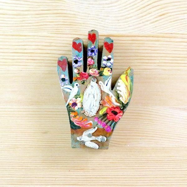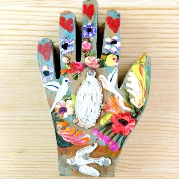 メキシコのアンティーク調に作られた雰囲気のある手がモチーフの壁飾り。