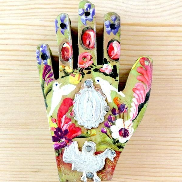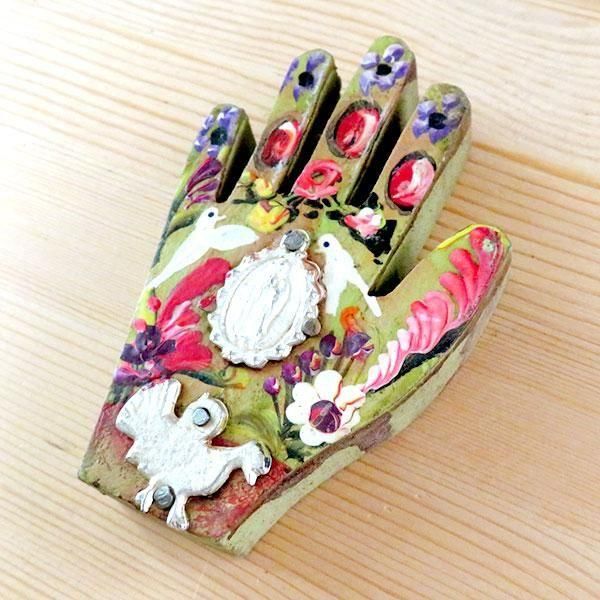 • <img class='new_mark_img1' src='https://img.shop-pro.jp/img/new/icons7.gif' style='border:none;display:inline;margin:0px;padding:0px;width:auto;' />メキシコ 壁飾り ハンド 手 ミラグロ ペイント マリアM(B)[13cm]