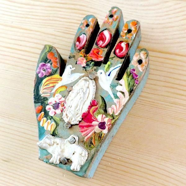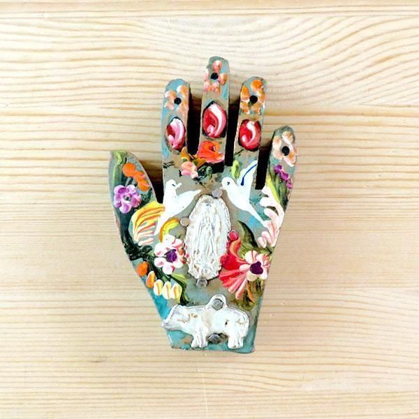 メキシコのアンティーク調に作られた雰囲気のある手がモチーフの壁飾り。