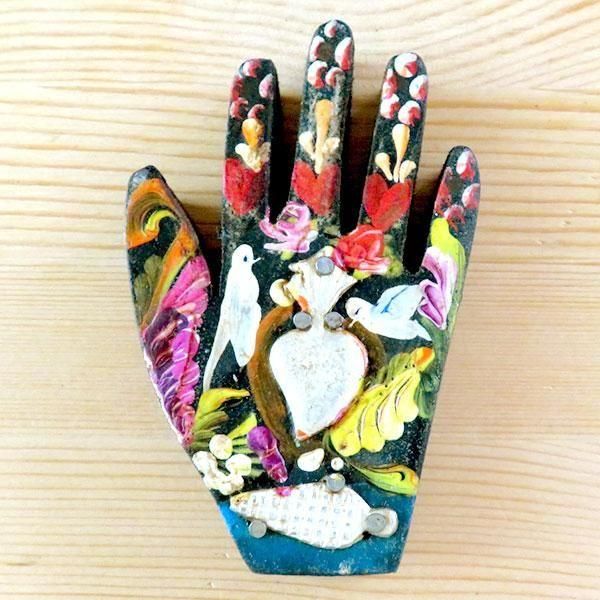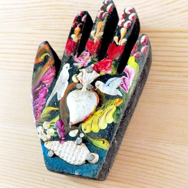 メキシコのアンティーク調に作られた雰囲気のある手がモチーフの壁飾り。
