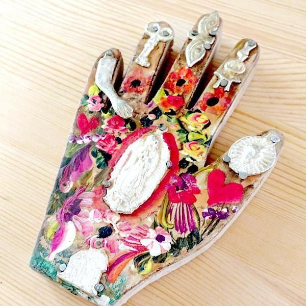 メキシコのアンティーク調に作られた雰囲気のある手がモチーフの壁飾り。