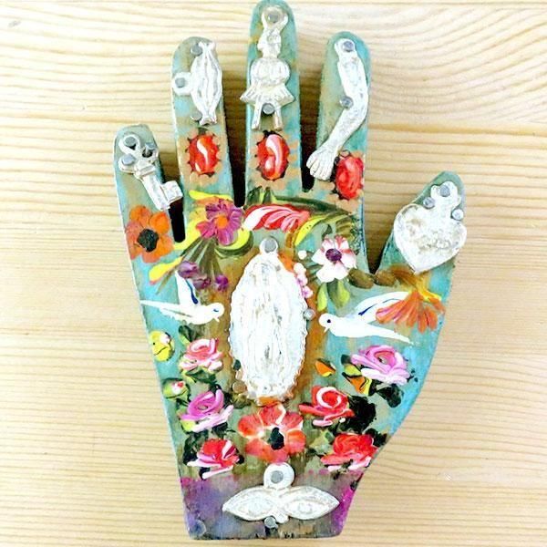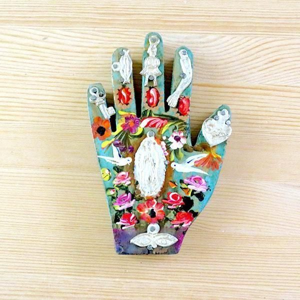 メキシコのアンティーク調に作られた雰囲気のある手がモチーフの壁飾り。