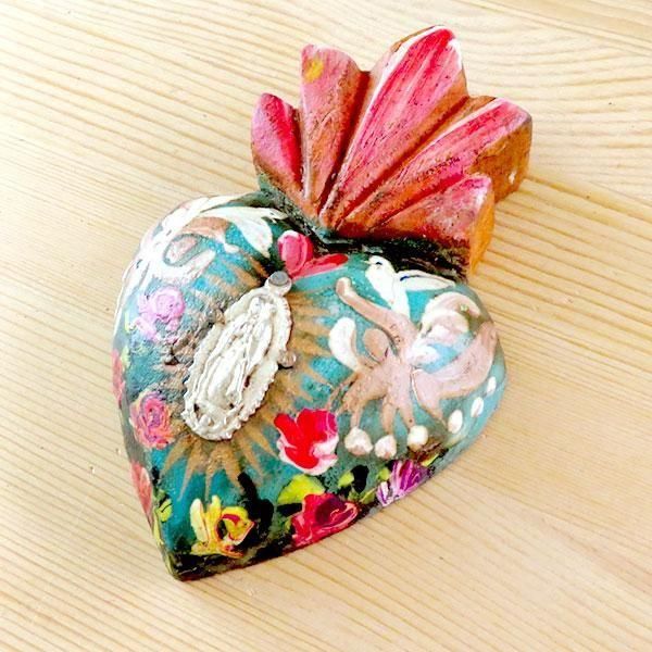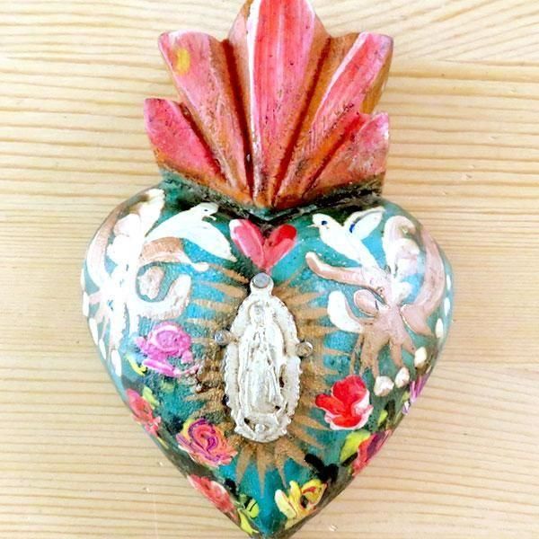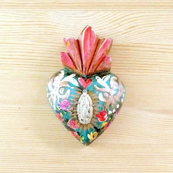 メキシコ 壁飾り ハート ミラグロ ペイント マリアS(B)[10cm]