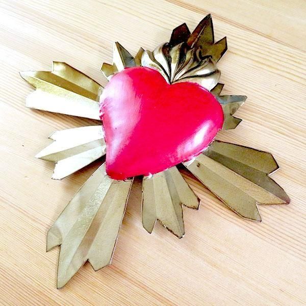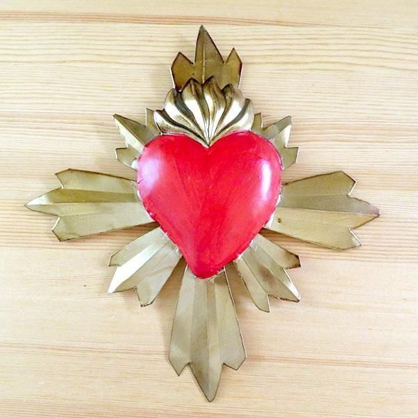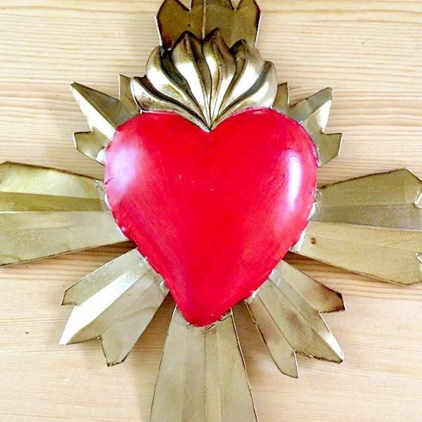 メキシコ 十字架 ブリキ ハート レッドML[23cm]